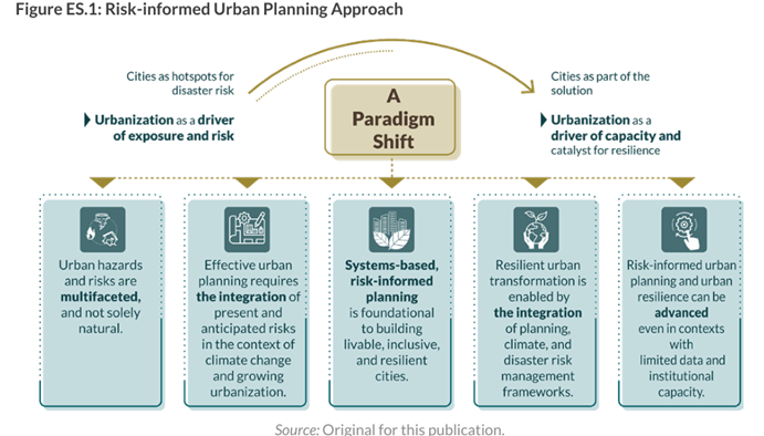 For cities to continue to grow and protect their development, urban planning must integrate risk considerations into land use, urban governance, and infrastructure investments while improving their liveability.